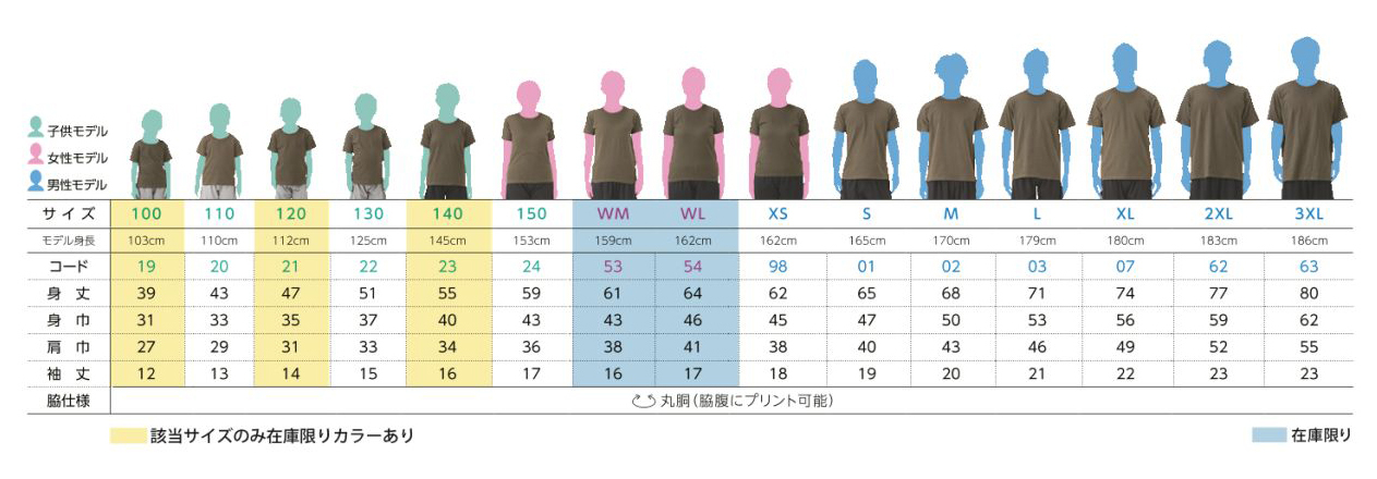 | XS~XL | ¥750 | ¥800 |
